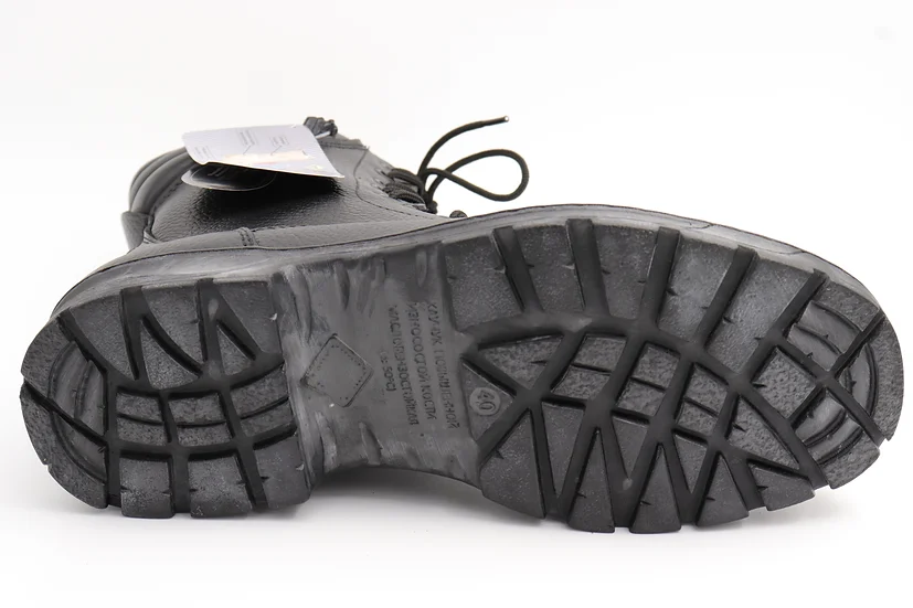 Хромовая кожа , высокий клапан , маслобензостойкий каучук повышенной износостойкости с температурным режимом от -50 до +50 цельсия . Модель представлены в наших магазинах.
